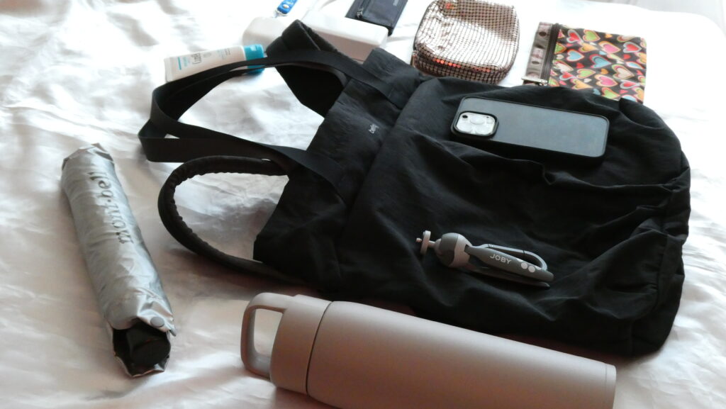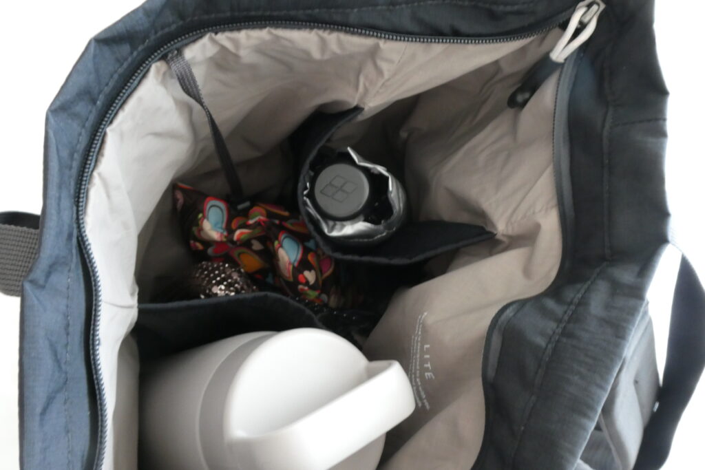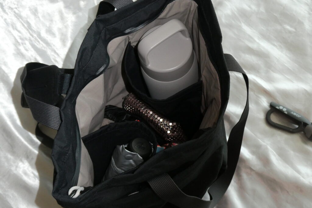 とにかく夏に(もちろん冬でも)、いろんなものを持ち歩いて長時間外出する日には、このライトトートパックがちょうどいいです。