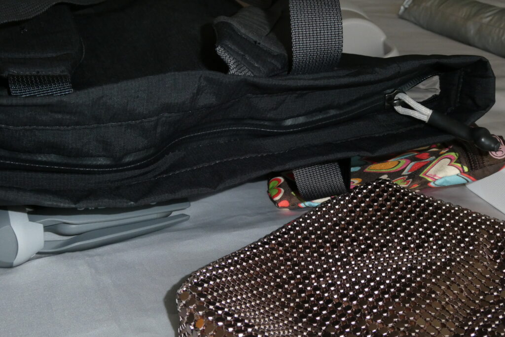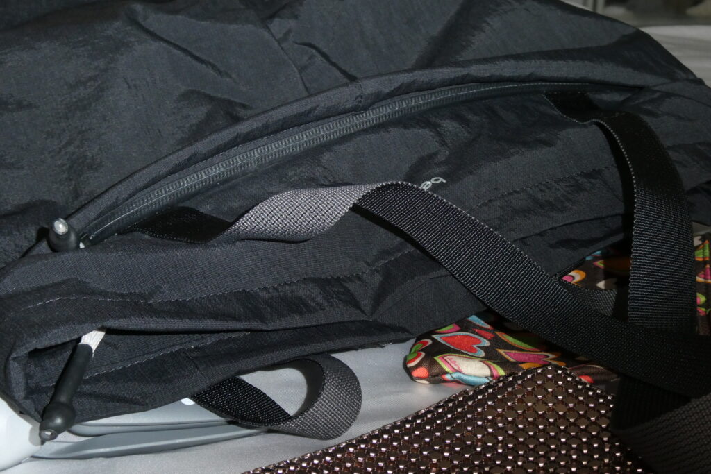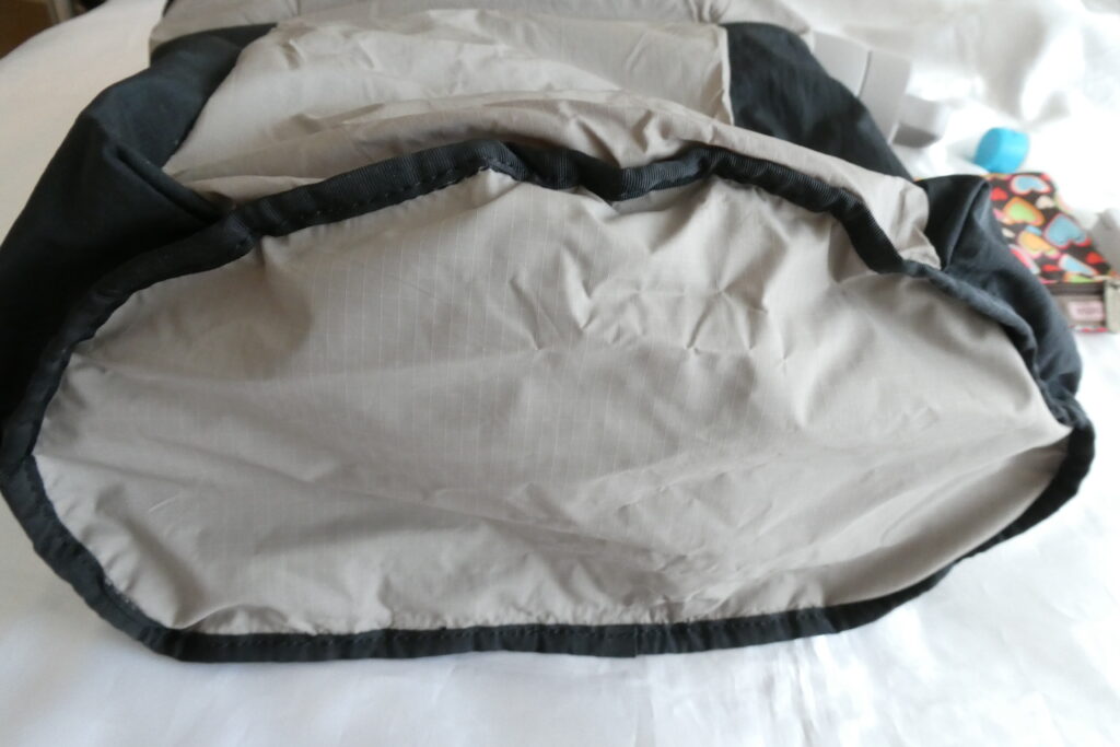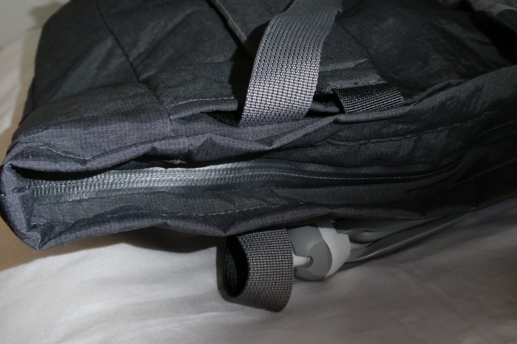 使わないときはすぐにフラットに戻せる設計は良いですが、私はいつも使っているので常に開いた状態です。旅行に使う際はフラットに戻すと、パッキングキューブ等を入れやすくなると思います。