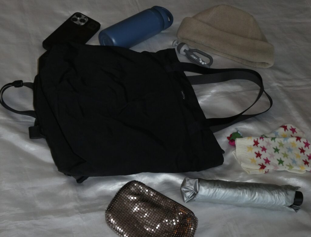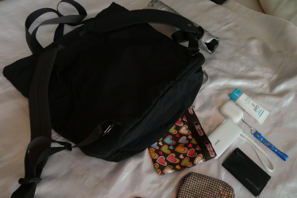 - スリングバッグ(小型バッグ)ではタオル・日傘・ウォーターボトルが入らない