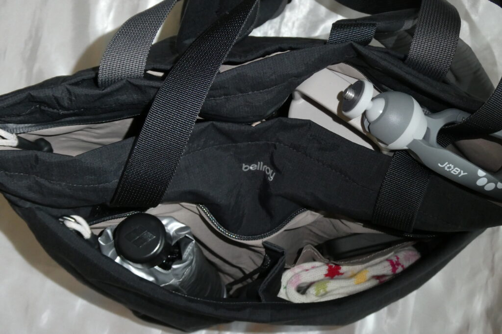 slingタイプのBellroyバッグは「思ったより入らない」と言われることもありますが、Bellroy Lite Totepackは逆に18L以上に感じるくらいです。