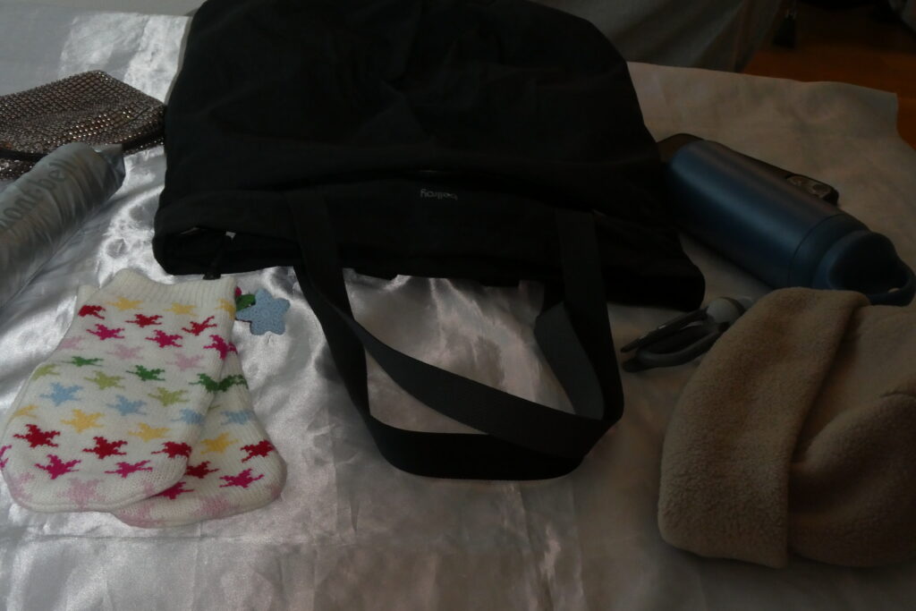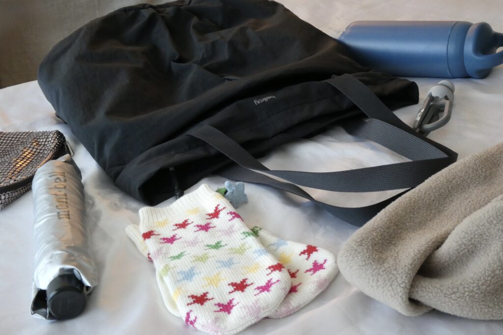 - 折り畳み日傘や冷房対策の羽織ものなどを持ち歩く日